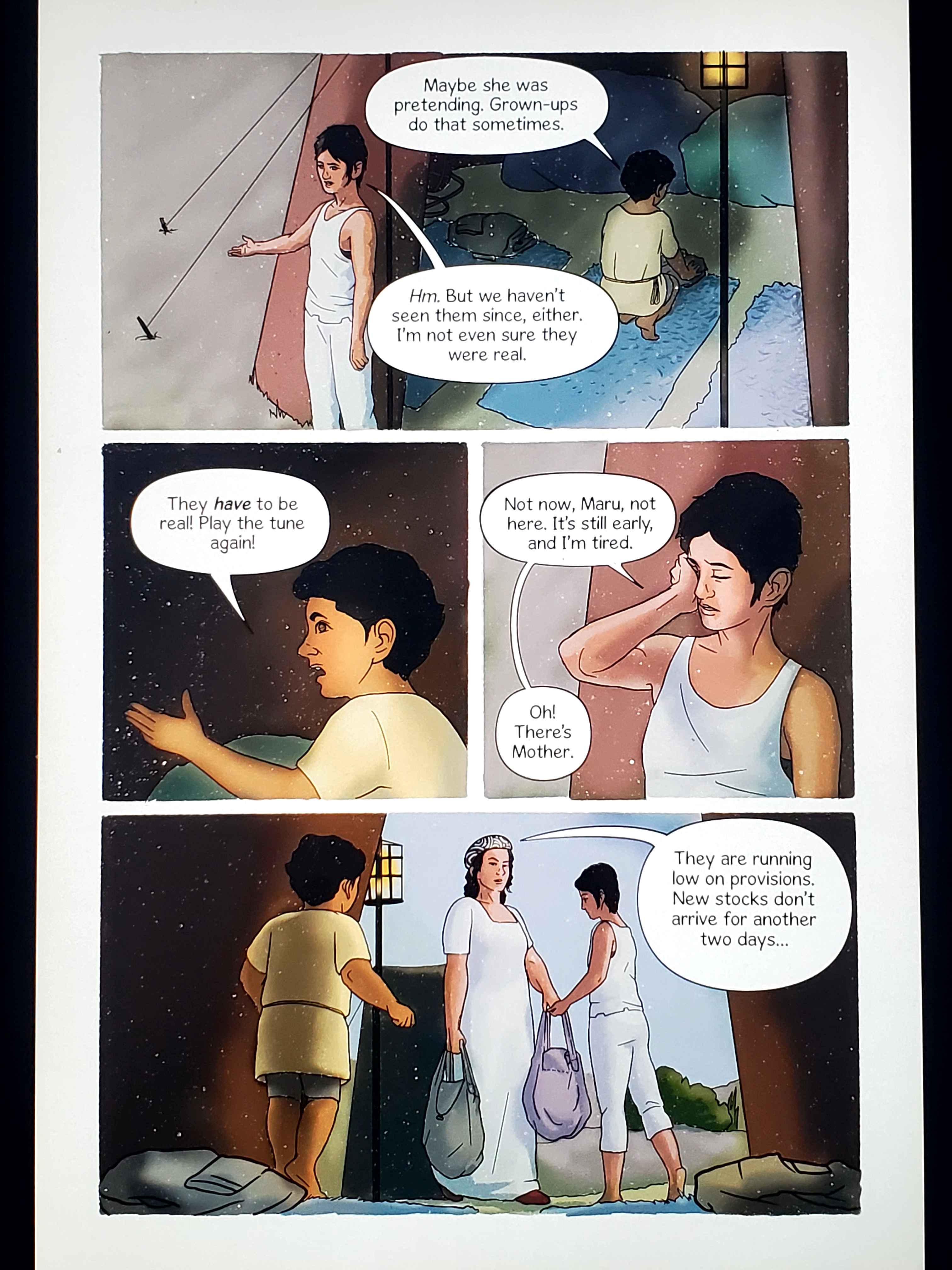 Here’s a tiny preview of some of the pages. If you’ve read Issue 1, you’ll know exactly who Osmi and Maru are talking about. But who’s this new kid? And what did they leave behind?